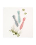 Cuchara y tenedor con diseño ergonómico. Su mango de silicona es muy suave, proporcionando un agarre firme.
