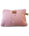 Su interior está confeccionado en 100% poliéster impermeable, garantizando que el contenido permanezca seguro. El exterior se presenta en una suave muselina de 100% algodón, lo que le confiere un tacto agradable y un diseño delicado.