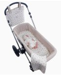 Las dimensiones aproximadas del arrullo son de 90 cm de ancho por 75 cm de alto. Además, sus tejidos cuentan con la certificación Oeko-Tex Standard 100, asegurando que todos los materiales están libres de sustancias nocivas y han sido probados rigurosamente para la piel sensible del bebé.