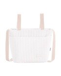 El bolso organizador silla paseo, se ajusta mediante un broche a presión al manillar del carrito.