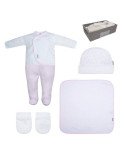Juego de 2 piezas para vestir la cuna, compuesto por colcha más protector. La colcha, es la prenda que viste la cuna y cumple el cometido de protección contra el frío como si de una manta o una funda nórdica se tratara. Su cualidad de tener un relleno desenfundable la convierte en una prenda versátil para ser utilizada en invierno y en verano y también ofrece la ventaja de ser lavada con facilidad. Dispone de 3 volantes que cumplen la función de vestir la cuna. El protector, fabricado con tejido cuyo interior está acolchado con fibra hueca para amortiguar los posibles golpes del bebé contra la cuna, los cuales se producen por los simples movimientos del bebé cuando está dentro de la cuna. Cambrass confecciona este juego de 2 piezas para cunas de 60x120 cm