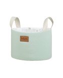 Tejido de punto de algodón 100% y gasa de algodón 100%. Tratamiento especial anti-peeling. Desenfundable para fácil lavado. Interior de fibras de poliéster. Cintas para atar a los barrotes de la cuna.