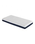 El colchón de cuna Care Ultimate tiene una cremallera perimetral que divide en dos partes el colchón: la base (de color blanco) y el topper (de tejido azul con zonas blancas). Este diseño facilita su limpieza y mantenimiento, a la vez que proporciona un doble uso al colchón.