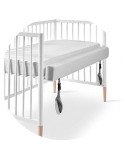 La cuna Happy de 120 x 60 cm está disponible en color blanco y blanco-waterwood, y tiene su textil opcional a juego, 100% algodón. También podrás completar la habitación del bebé con su bañera convertible en cómoda. ¡Combínala para conseguir la habitación perfecta!