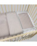 Prepara la cunita del bebé con este adorable y completo set de mini cuna de la colección Praliné Vichy/Rayas Matcha o Moka de Walking Mum, diseñado para mini cunas de 90×50 cm. Este conjunto ha sido pensado para ofrecer el máximo confort y un toque de elegancia a la habitación infantil, ideal para arropar al bebé con suavidad y seguridad.