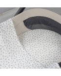 La colección Little Bloom de Pasito a Pasito se distingue por su encantador y delicado estampado de cuadros en tonos grises. Este diseño atemporal no solo aporta un toque de elegancia y calidez a la cuna, sino que también se integra armoniosamente con cualquier estilo de decoración de la habitación infantil. Es perfecta para crear un ambiente sereno y acogedor donde el pequeño se sentirá protegido y a gusto.