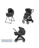 Silla: Silla reversible y reclinable. Incluye la estructura de silla/capazo, funda de silla, estructura de silla, arnés de seguridad de cinco puntos, reposapiés ajustable y asa de transporte rotatoria.