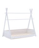 Esta genial cama tipi completa una moderna habitación junior. Decora el elegante marco en forma de A con luces, guirnaldas u otros accesorios divertidos para que el dormitorio de tu hijo sea aún más personal. También puedes transformar la cama tipi en una auténtica tienda de campaña gracias a la funda opcional que está disponible. De esta forma, su pequeño aventurero descansará seguro en su propia tienda de safari. Todo el marco de la cama está hecho de madera maciza. Una base de listones adecuada está disponible opcionalmente. El armazón de la cama se coloca directamente en el suelo y no se puede colocar sobre una cama junior o una cama para niños pequeños. Nota: la madera utilizada no fue tratada.