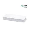 La sábana ajustable confeccionada con fibras de TENCEL'! (para cuna 60) de Cambrass funciona como una práctica bajera al adaptarse al colchón por los laterales con su goma elástica, es impermeable y transpirable. Su fabricación con fibras de TENCEL'! 100% garantiza el confort y el bienestar durante el descanso por su impermeabilidad y transpiración, además ofrece una protección antimicrobiana de larga duración, evita la aparición de malos olores, es hipo alergénica y termorreguladora. Fibras botánicas y ecológicas que aportan absorción, suavidad y frescura.