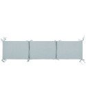 El suave protector de cama tiene unas prácticas cuerdas para sujetarlo a la cama del bebé. Mide 360 cm., por lo que se adapta a la mayoría de las cunas.